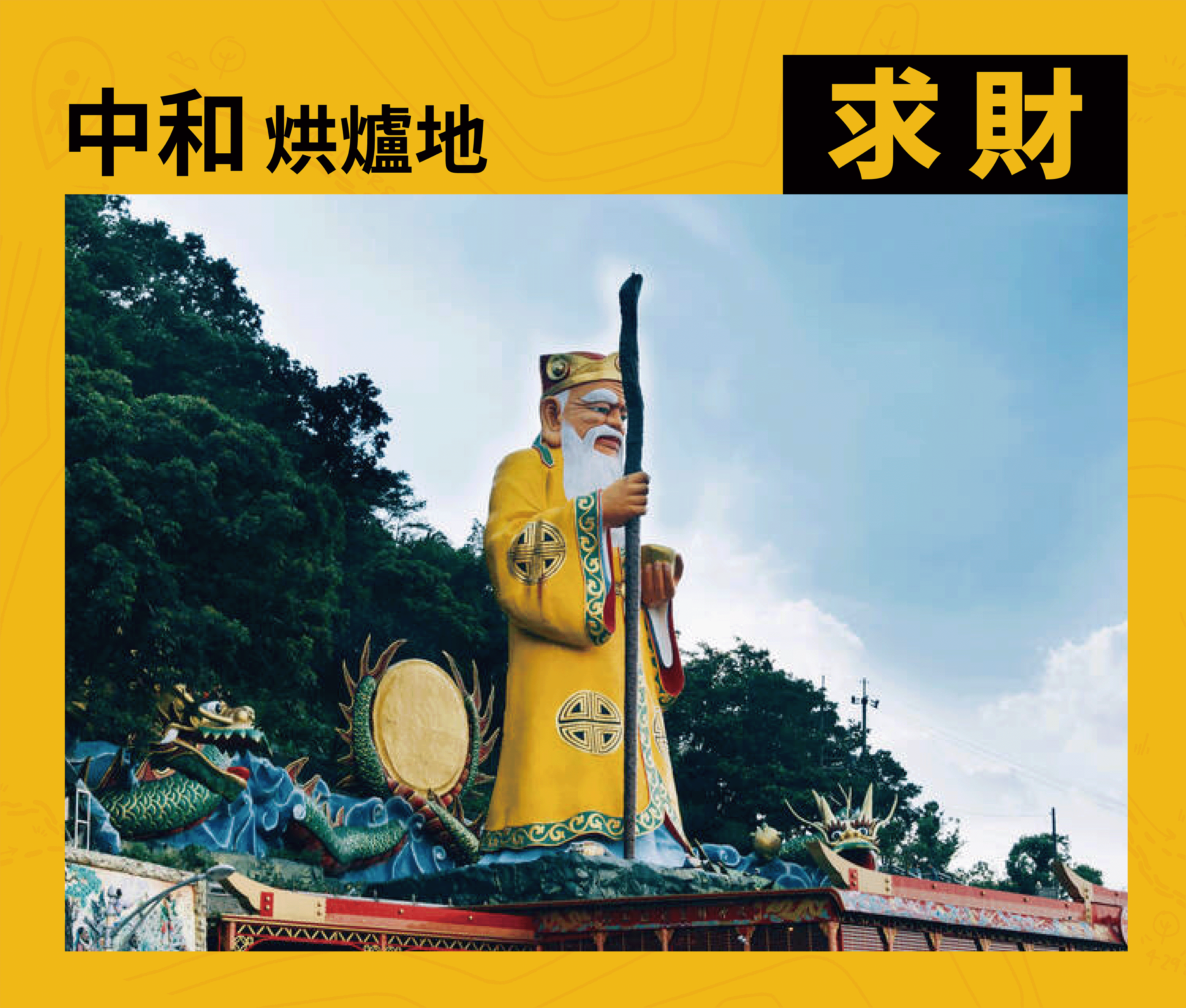 台灣著名的求財勝地,以巨大的土地公神像為標誌。